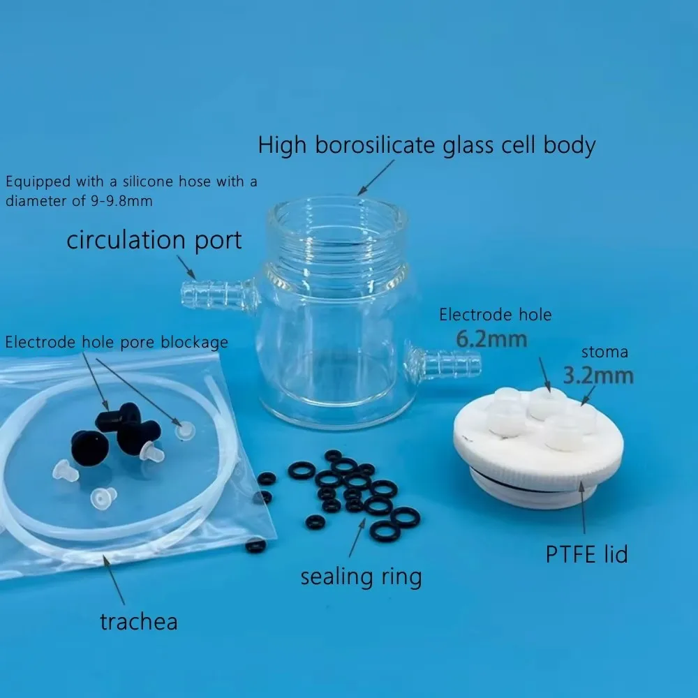 Product features: Glass tank body, PTFE cover (regular 3 6mm electrode holes, 2 3mm air holes), customizable punching