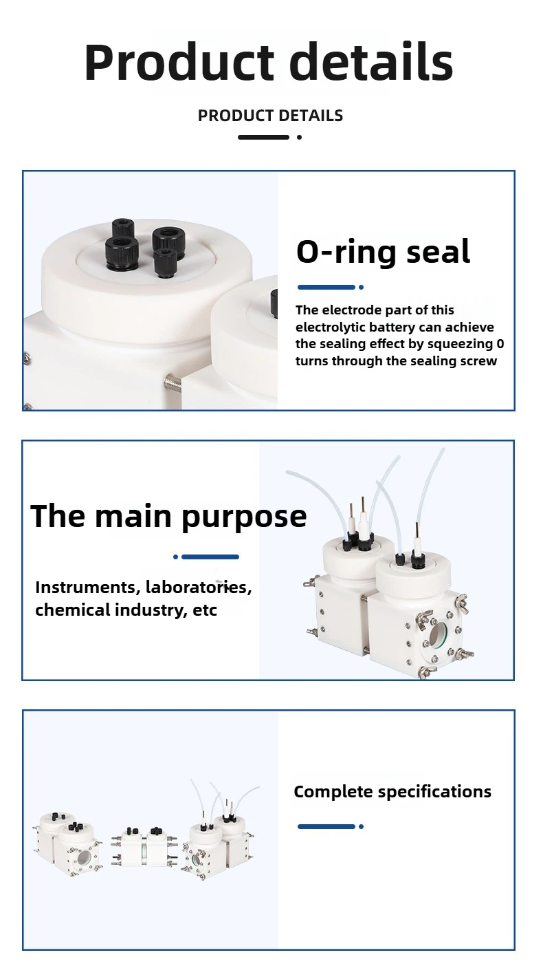 Model: PTFE H type exchangeable membrane sealed electrolytic cell