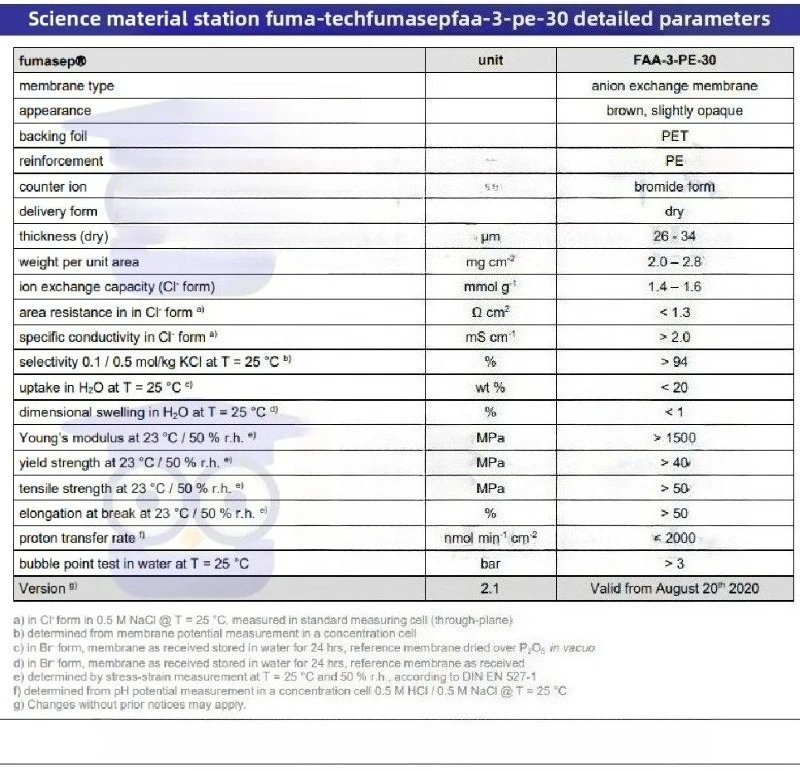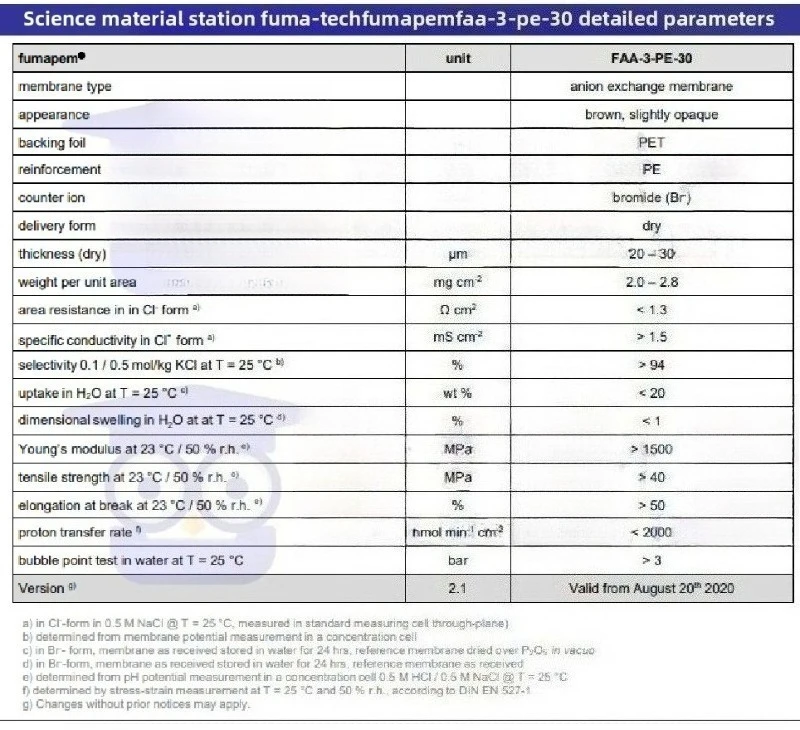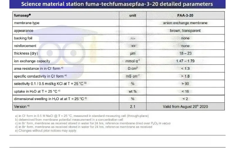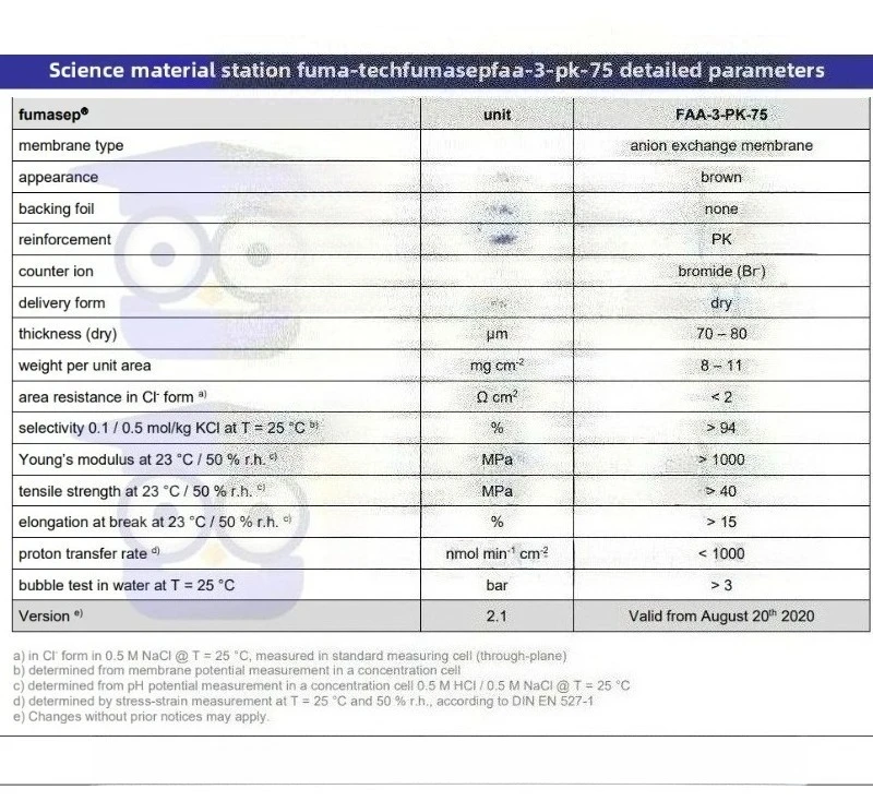Fumasep FAA-3-20/30/50 FAA-3-PK-75/130 FuMA Tech anion exchange membrane