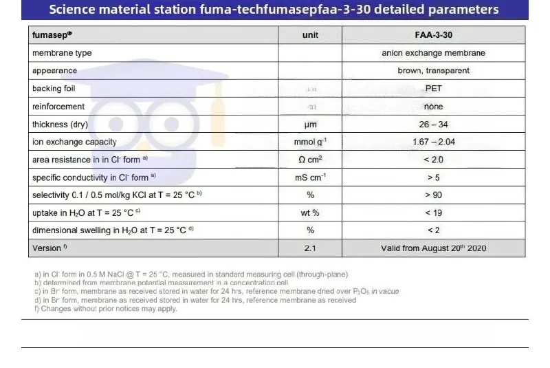 Fumasep FAA- 3-20/30/50 FAA-3-PK-75/130 FuMA-Tech Anion Exchange Membrane