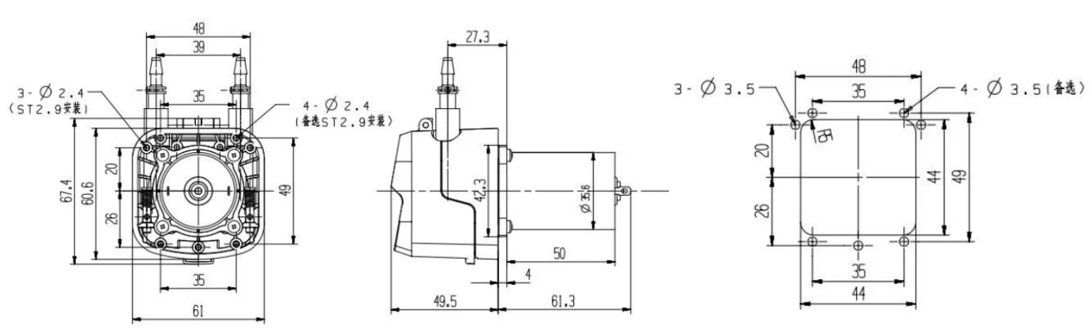 The above parameters are measured with pure water without pressure at room temperature and standard atmospheric pressure at 20°C. Actually, there will be certain errors in the flow rate due to different media, different outlet pressures, and DC motor speed errors. The data are for reference only. In addition, it can be customized according to customer needs. |